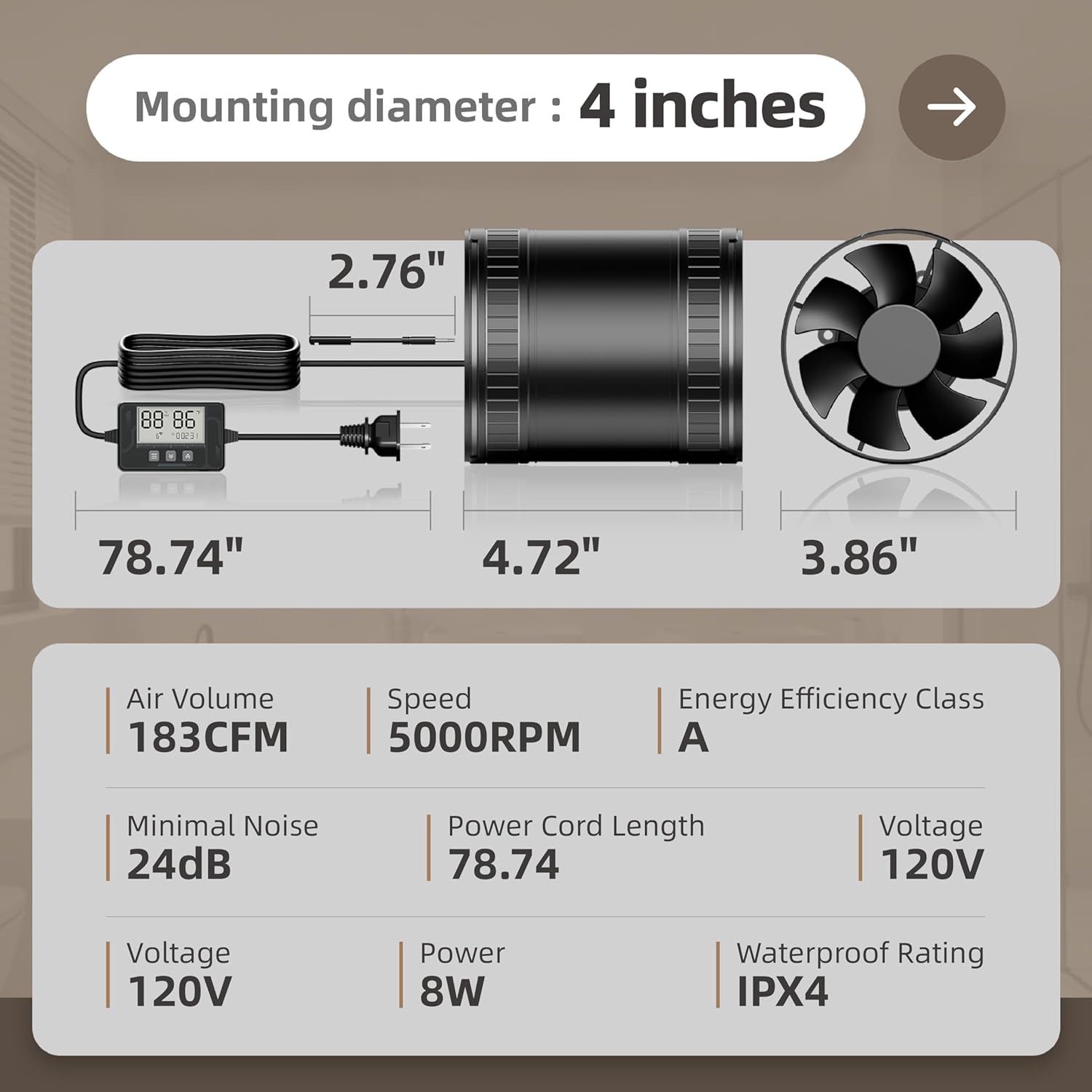 | Model Number | 4 Inch Inline Duct Fan |