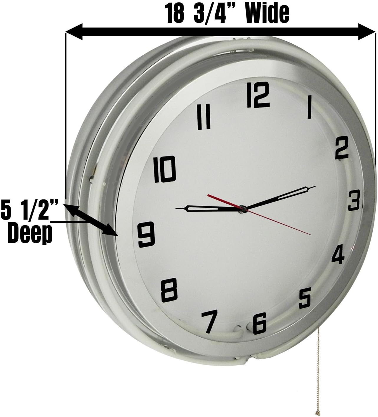 This brand new ready-to-hang neon clock makes a perfect addition to any garage, bar, game room or man cave! Clocks are lit with two double neon tubes, one color for the outside and one bright white on the inside. Clock motor contains a high-precision quartz movement and sweep technology making it smooth and quiet with no "tick-tock" noise. Inside image is a printed high quality graphic which can have words added to it upon request. Have an image or business logo you'd like to add to the clock? We can do customizing upon request. Whether you want a gift with a "wow factor" or compliment your own home/shop, our neon clocks will impress!